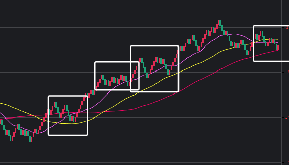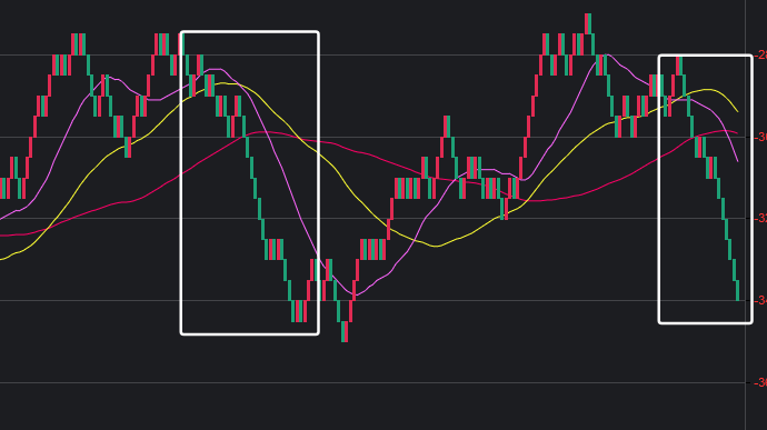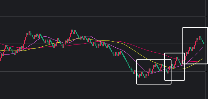 可以看到一些规律,在白框中,如果一致,那么接下来这些跨度也会出。
