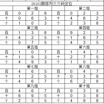 2026103期体彩排列三号码推荐: