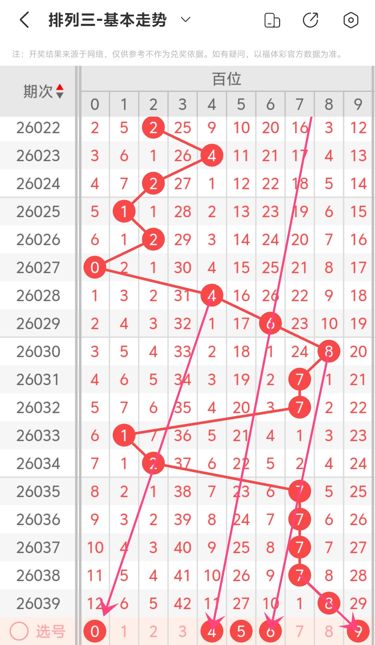 下面是体彩排列3的百位走势图分析