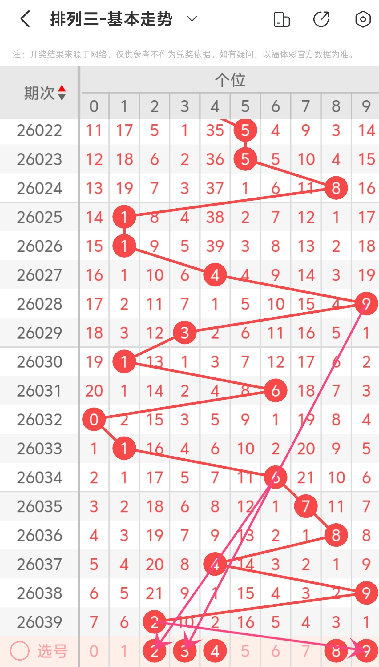下面是体彩排列3的个位走势图分析