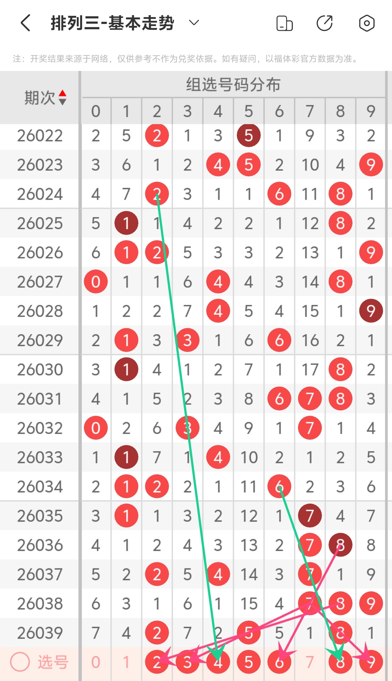 通过以上简单分析,我们看下26040期号码的定位分析: