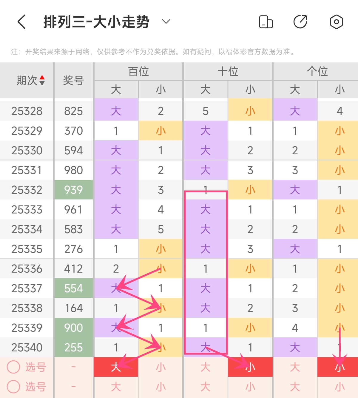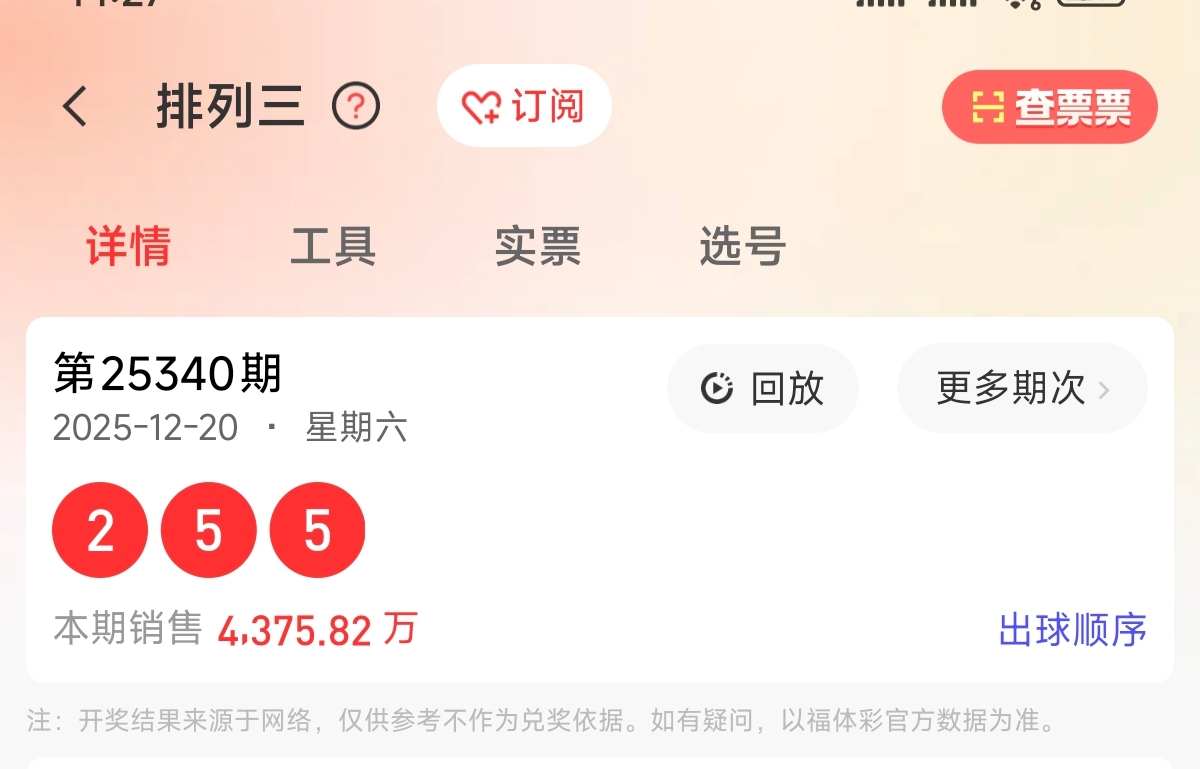 首先让我们回顾一下上期排列三第2025340期开奖号码为255,为组三形态,大小比为2:1,奇偶比为2:1,跨度为3,和值为12。