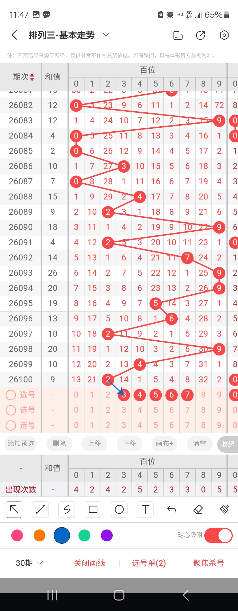 个位走势标注如下图;