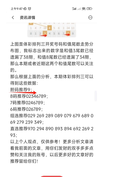 上图是上期体彩排列三号码分析文章截图,我最后推荐的胆码正确,这个你们去看上期的号码分析文章吧。