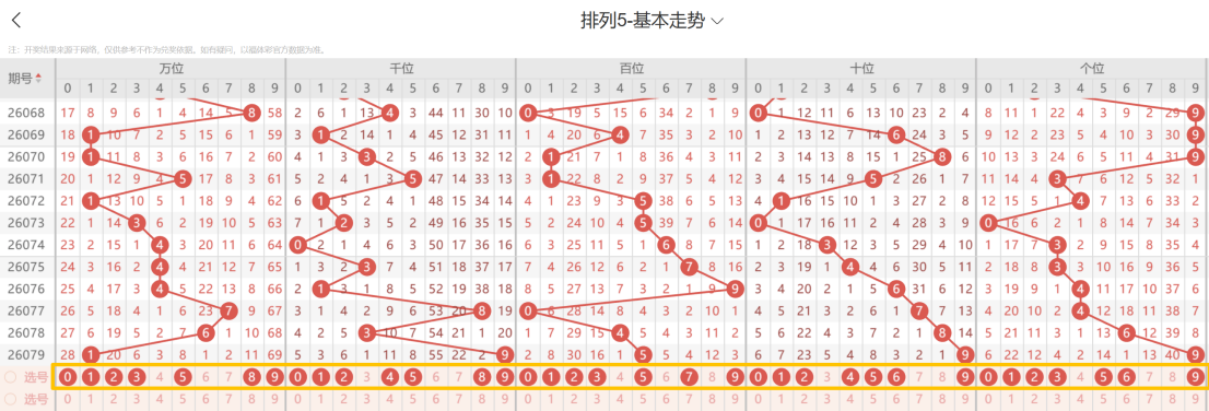带着粉丝发大财体彩排3、排5第26080期选号条件分析