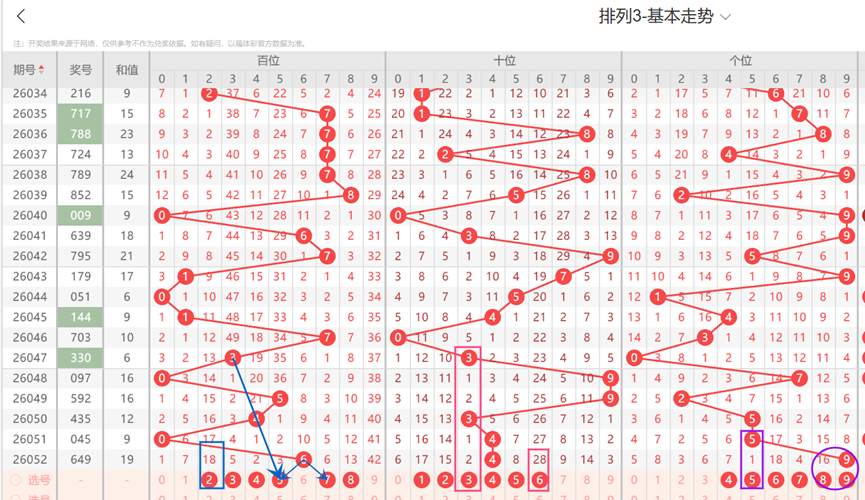 体彩排列3-第053期定位分析如下:
