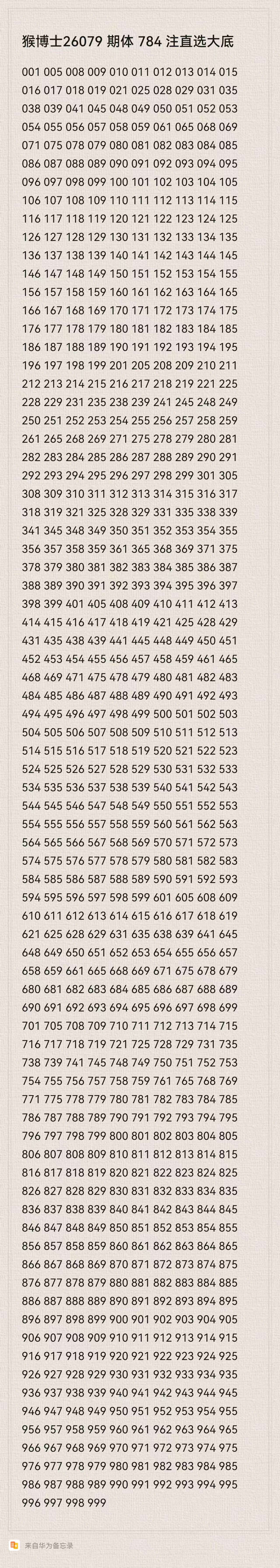 猴博士26079期排列三784注直选大底:(可以当母底用,然后进行缩水)