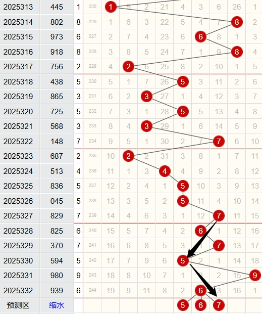 上期跨度为6,近5期跨度开出情况:第25328期开出6,属于偶数,0路号码,水属性;第25329期开出7,属于奇数,1路号码,火属性;第25330期开出5,属于奇数,2路号码,土属性;第25331期开出9,属于奇数,0路号码,金属性;第25332期开出6,属于偶数,0路号码,水属性;