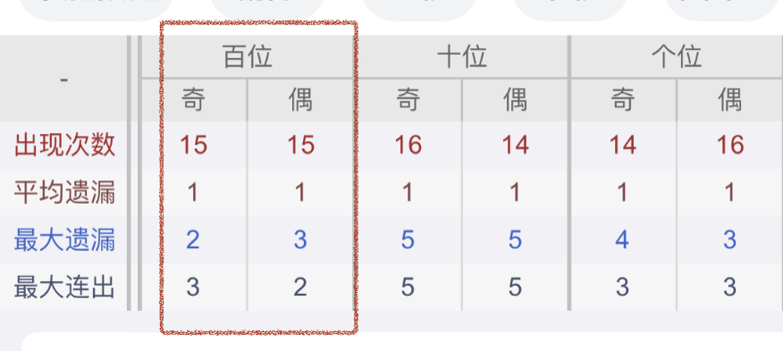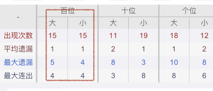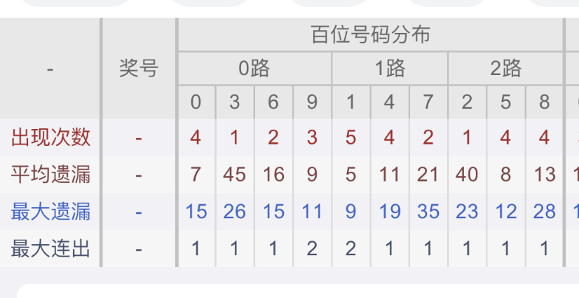 从近30期数据我们可以看出百位0,1是热码,这个冷热码数据我们结合之后的分析再利用它