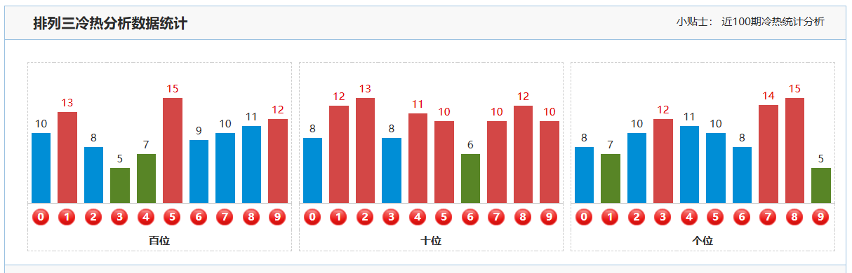 4. 跨度分析:上期跨度为5,这是一个大的跨度值。从跨度的振幅来看,和上期跨度相同,本期在跨度分析上,我们预期跨度会回补减小,因此,预计本期跨度可能落3至7之间。