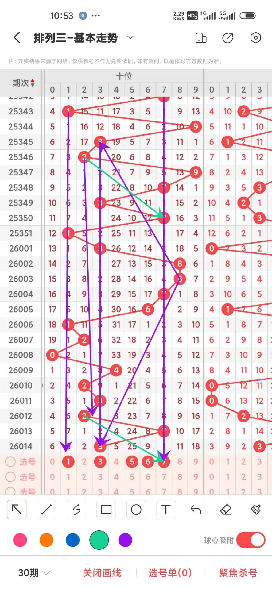2026015期,上期十位开出奇数3,我们通过走势图来看300期012路中下号的数据,0路号码的最大总数是104次,0369分别在300期内下号分别是25,27,23,29,这几个号码目前差别不大,我们再来看1路号码最大总数是103,147号码分别是,33,29,41,7下号次数最多41次,再回过头来看2路号最大总数是93次,258号码分别是39,24,30次,这三个数之间5下号最少,在来看十位平均遗漏,目前0路遗漏的总数是44次,1路遗漏的总数是24,2路遗漏总数28,十位目前小号下号热度高,我们可以关注下,通过上面的走势分析我们可以看出目前十位1237号码走势比较好,58号码走势就有点冷淡,今天十位我们重点关注14567,具体看下面走势图
