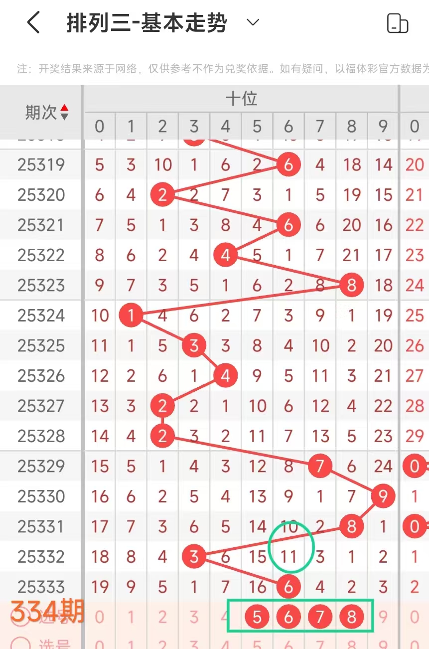 金莱排列3第334期:本期和值主看双数