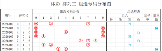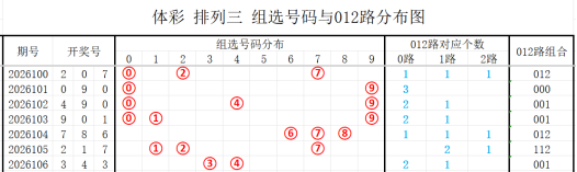 通过对走势的综合判断,现对体彩 排列三 2026107期分析如下: