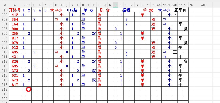 如上图7,012路分析-1路出号的概率还是很大,本期可以从1路号入手4代表78。