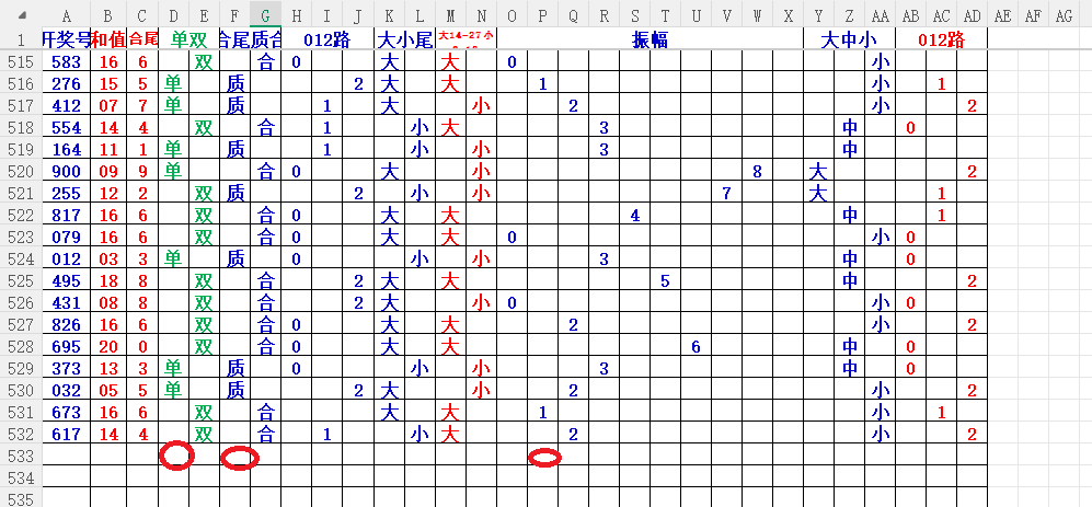如上图2,012路分析,01路尾走比较好,关注3456尾;