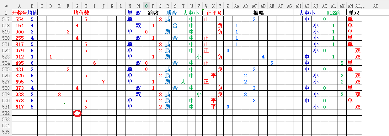 如上图1,大中小分析,均值小中大数比较好,也就是 3456 均值最好,重点:45。