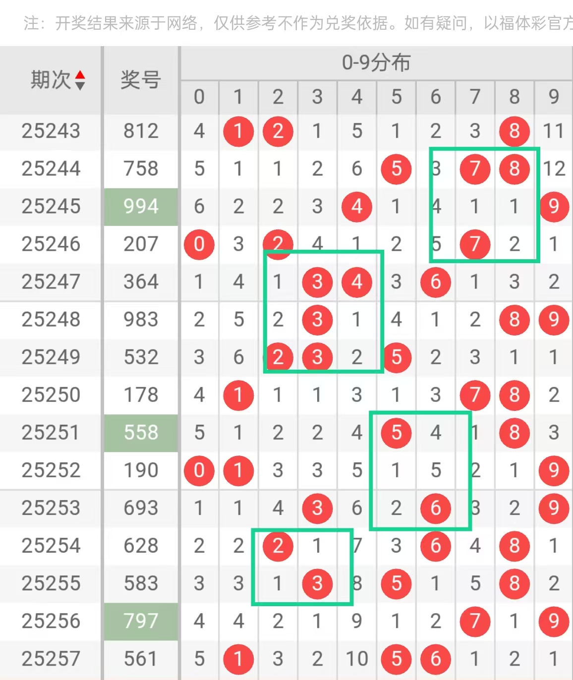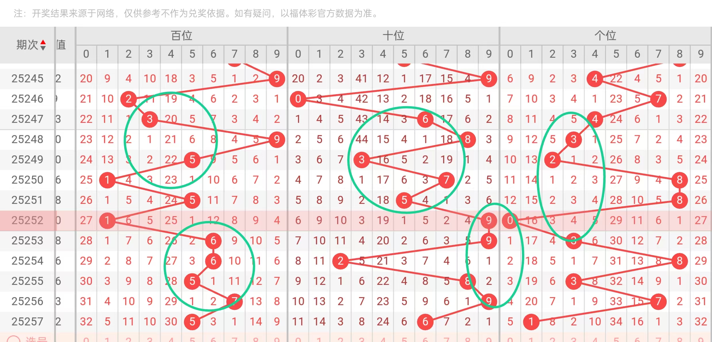 十位5的存在对“连号”(如456、567)、“斜连号”(如456、654)等形态有一定影响,但5本身并不属于“极端数字”,因此排除它可以减少不必要的形态干扰,使选号更聚焦于明确的趋势(如冷号回补、遗漏值高的数字)。