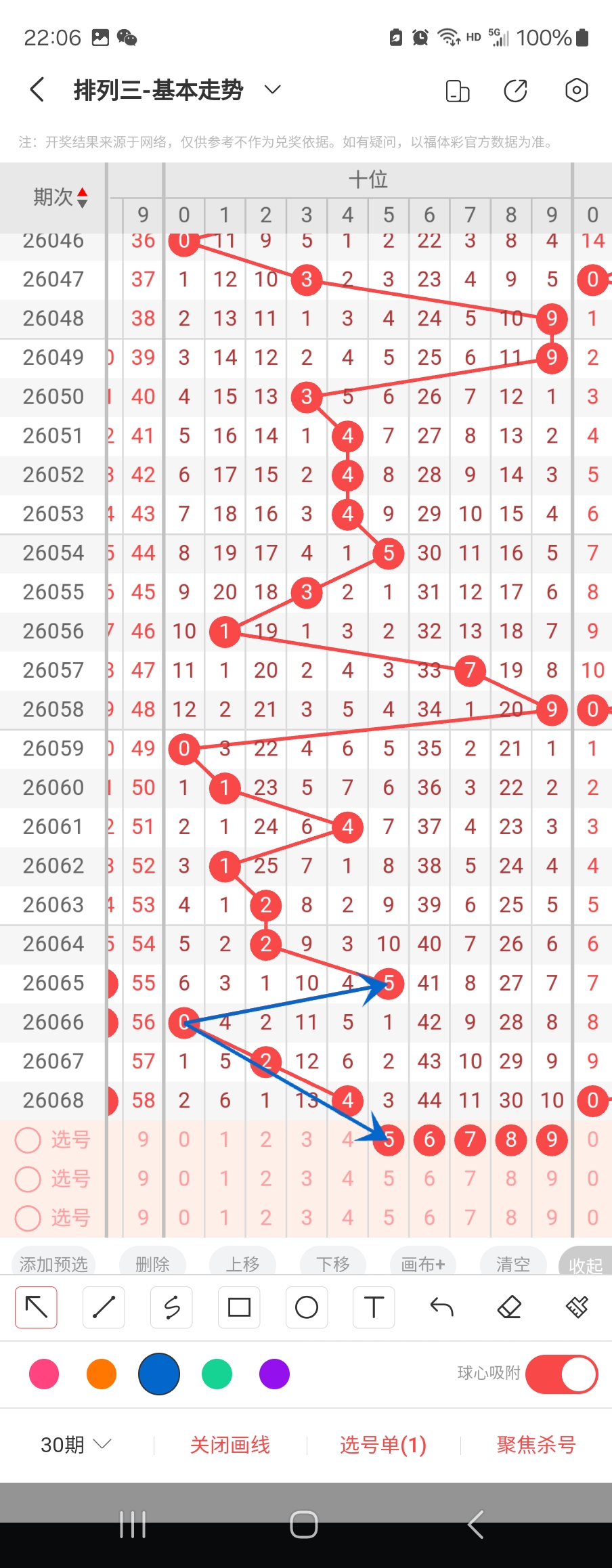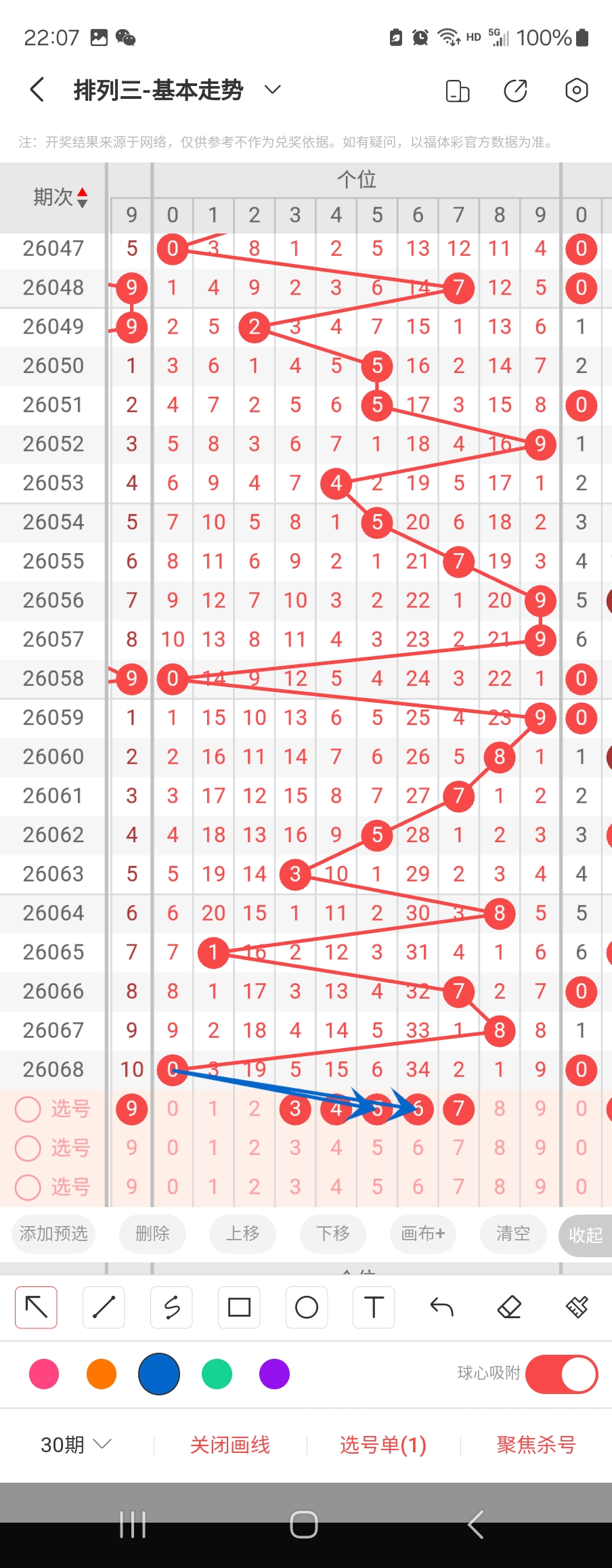 个位走势标注如下图;