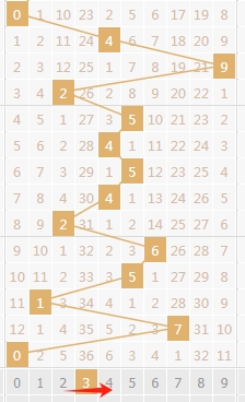 上图是体彩排列三开奖号码和值尾数走势图,我标志出来的是和值3尾数,到本期为止和值3尾数已经连续遗漏了36期,那么本期或者近期和值3尾数还是可以值得去关注的。