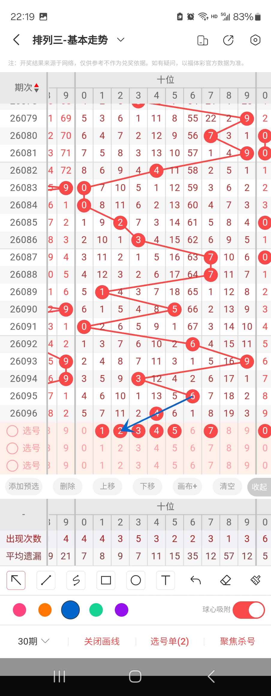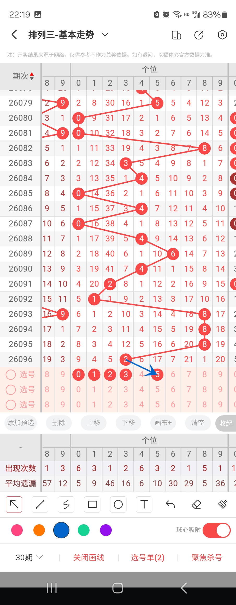 综合上期形态分布利于下期形态选号,约定12357为质,04689为合,147为1路,258为2路,0236为0路,