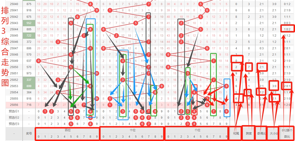 三、体彩排列3第2025057期选号分析预