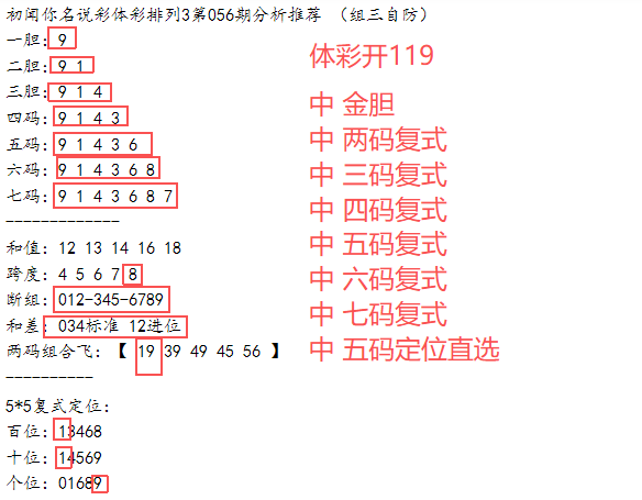 初闻你名排列3第057期丨上期中1-7码复式/五码定位直选/挑战排五一注