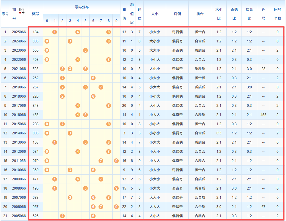 1、统计往年同期开奖号码