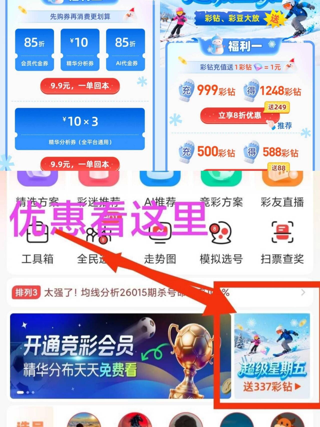 1,每个主播或者每个彩虹会员的免费文章下面都有链接,2,在首页的活动页面有流动图片,3,在我的上述《超级星期五,充值大放送》可以直接点击进入