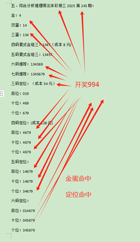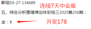 体彩排列三251期分析,上期会员文章中金蛋,连续7天金蛋中