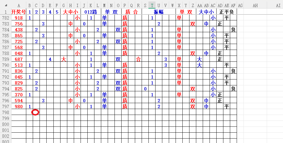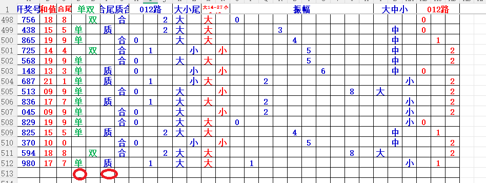 如上图7,012路分析-1路出号的概率还是很大,本期可以从1路号入手4代表78