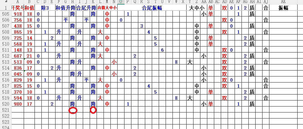 如上图2,大中小分析来看,中小数尾3456尾,可以考虑定3456尾。