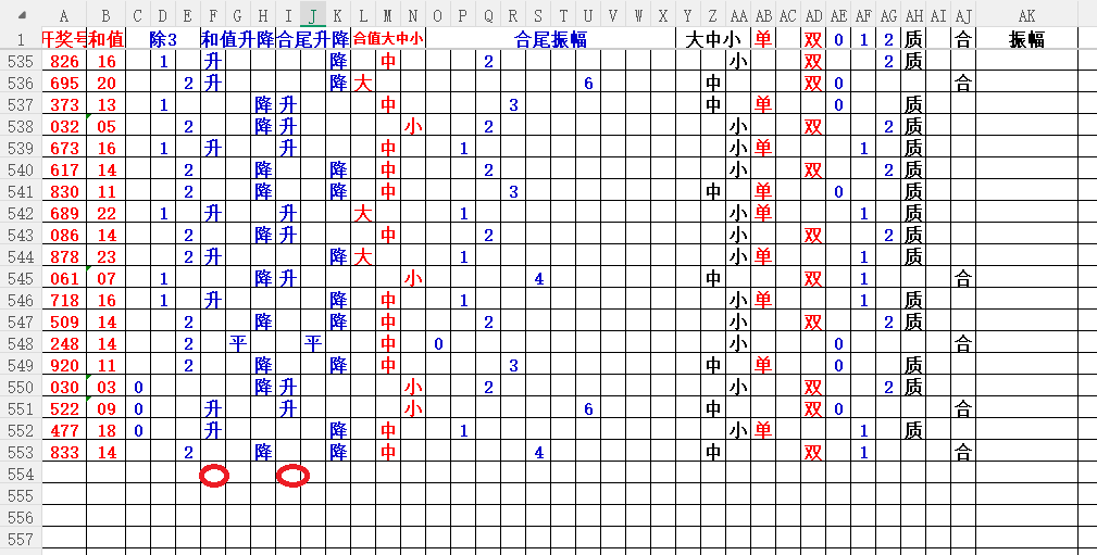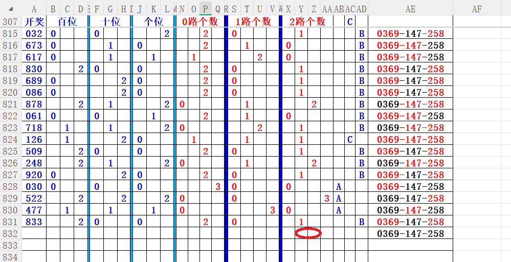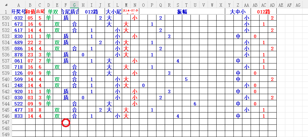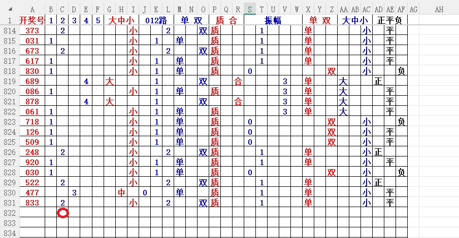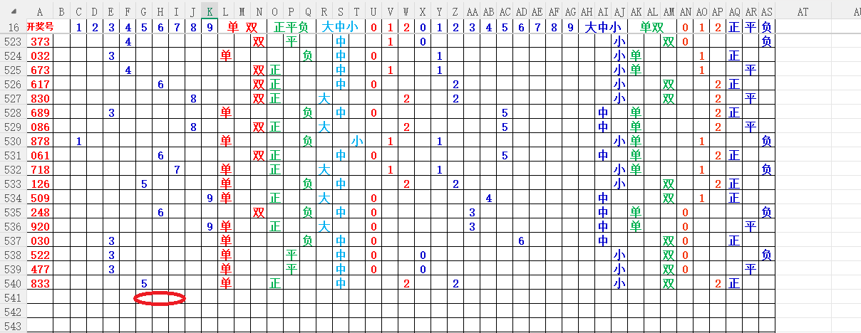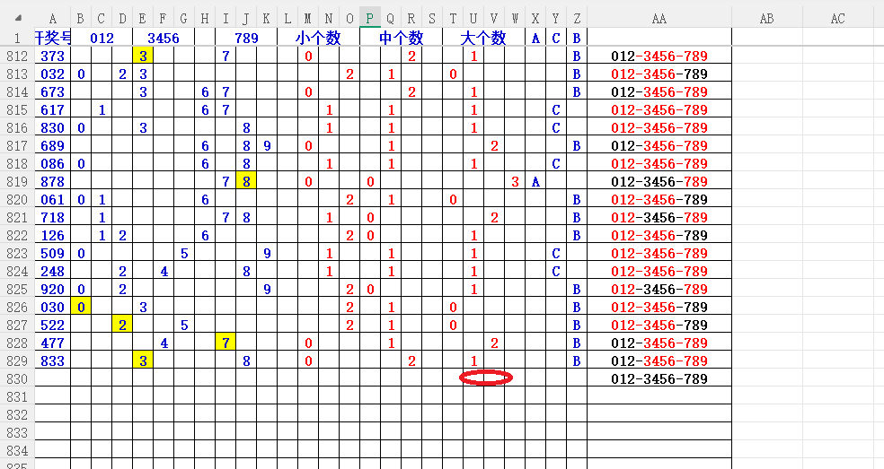 如上图2,012路分析,01路尾走比较好,关注34567尾;