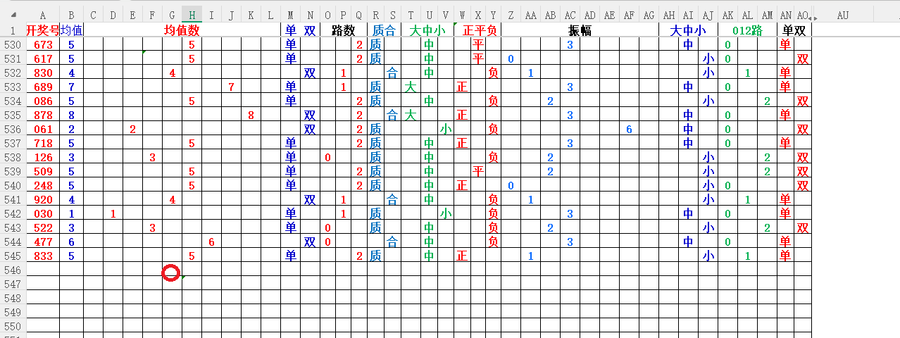 如上图1,大中小分析,均值小中大数比较好,也就是 3456 均值最好,重点:45。