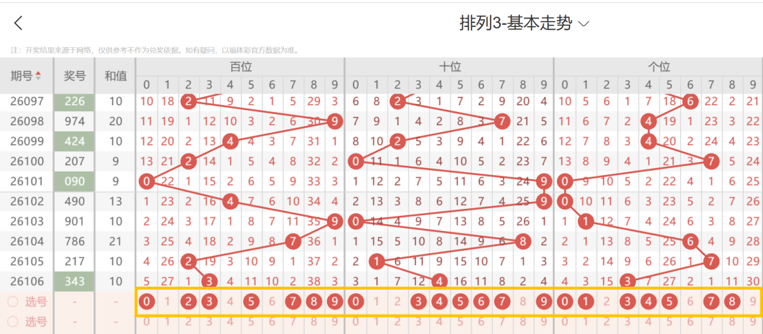 带着粉丝发大财排列3第26106期选号条件分析