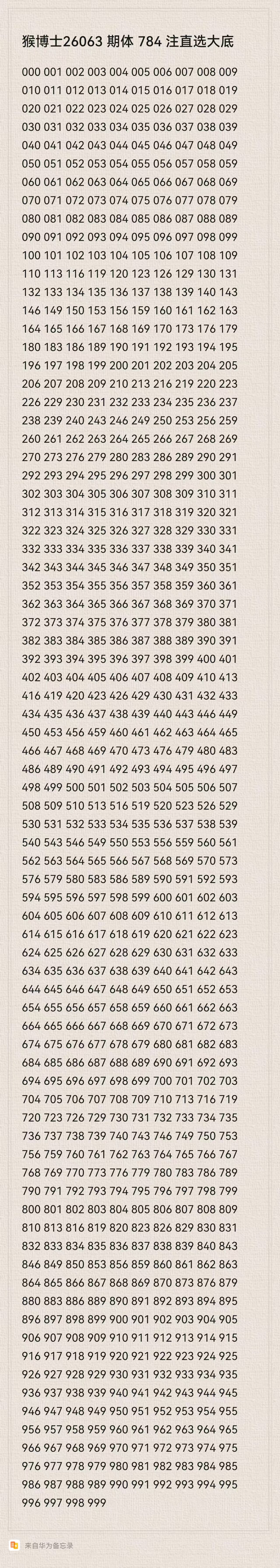 猴博士26063期排列三784注直选大底:(可以当母底用,然后进行缩水)
