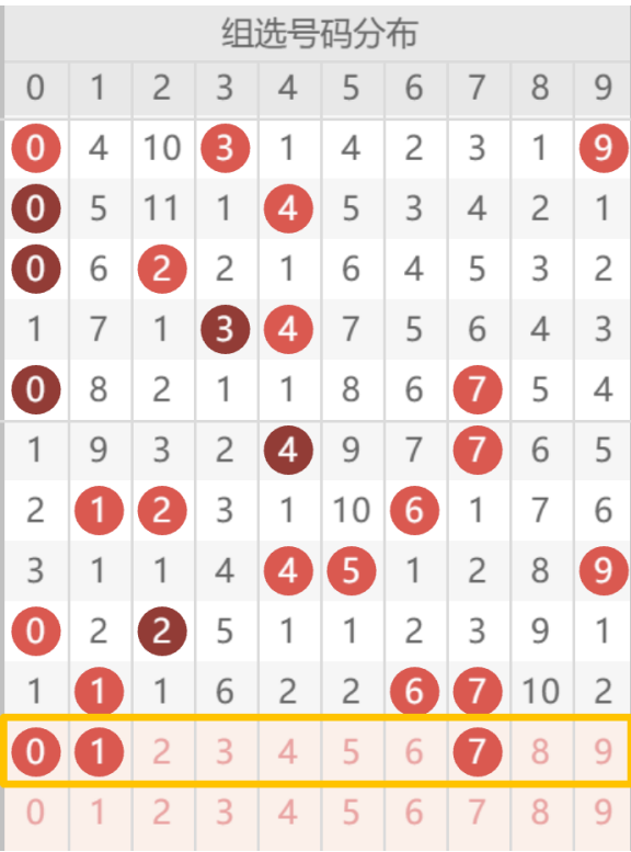 十位:近 20 期十位热码:6(7 次)、0(6 次)、1(5 次)、7(4 次)、2(3 次);温码:4、5;冷码:3、8、9(直接剔除);十位为凸形态中间最大位,七码包含 5、6、7 等大号,完美适配凸形态结构;奇数 3 个(1、5、7)、偶数 4 个(0、2、4、6),匹配 1 奇 2 偶走势。