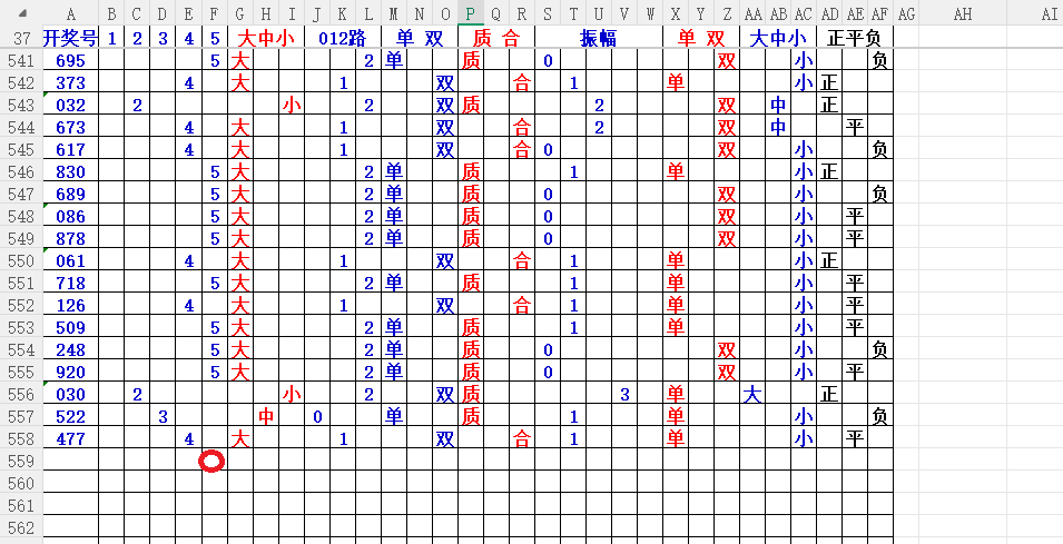 如上图2,大中小分析来看,中小数尾3456尾,可以考虑定345尾。