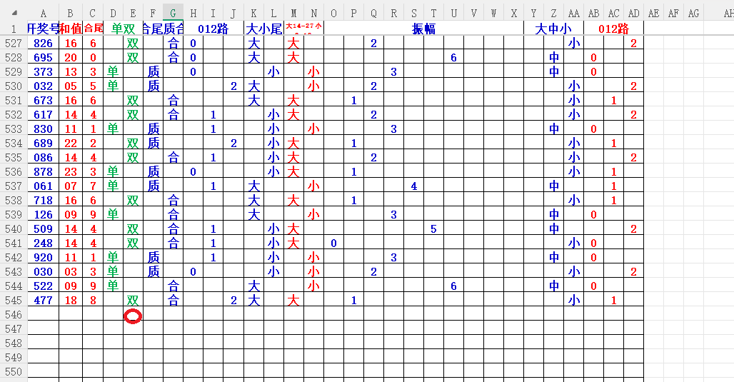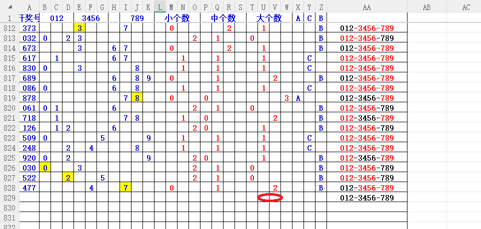 如上图2,012路分析,01路尾走比较好,关注34567尾;
