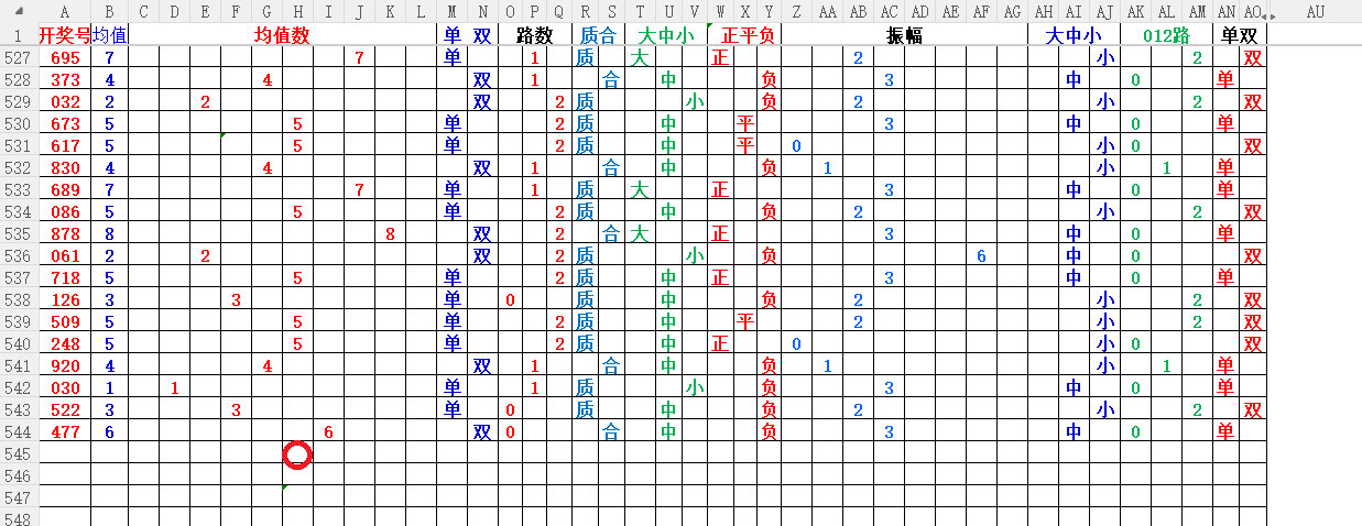 如上图1,大中小分析,均值小中大数比较好,也就是 3456 均值最好,重点:45。