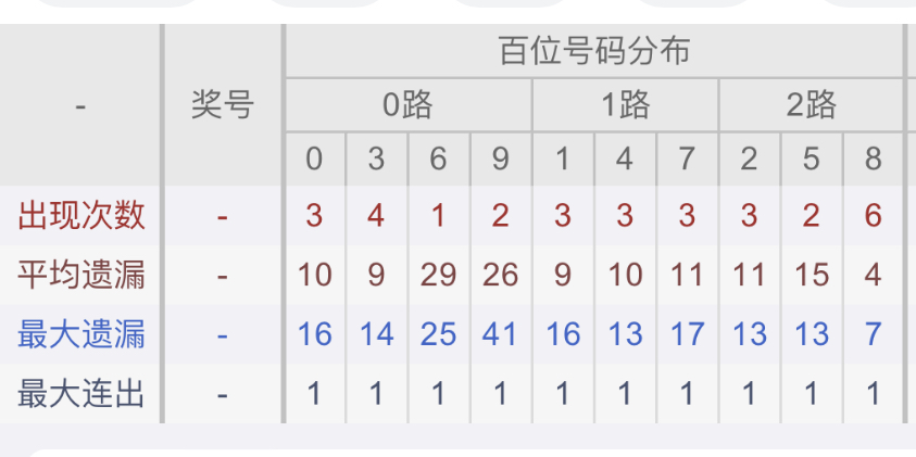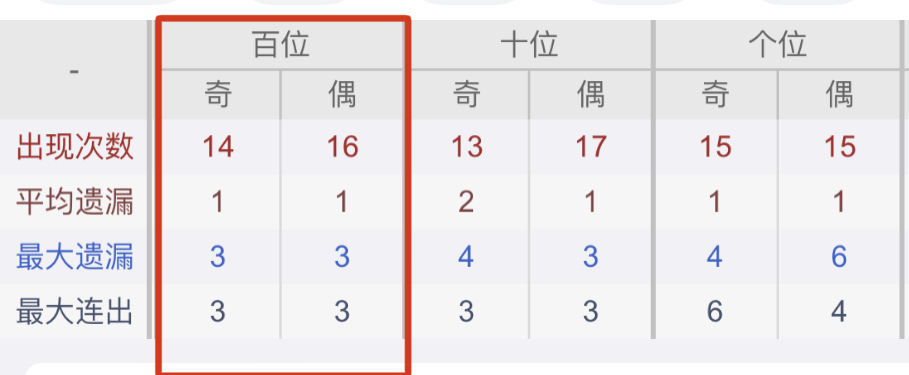 从近30期数据我们可以看出百位38是热码,这个冷热码数据我们结合之后的分析再利用它