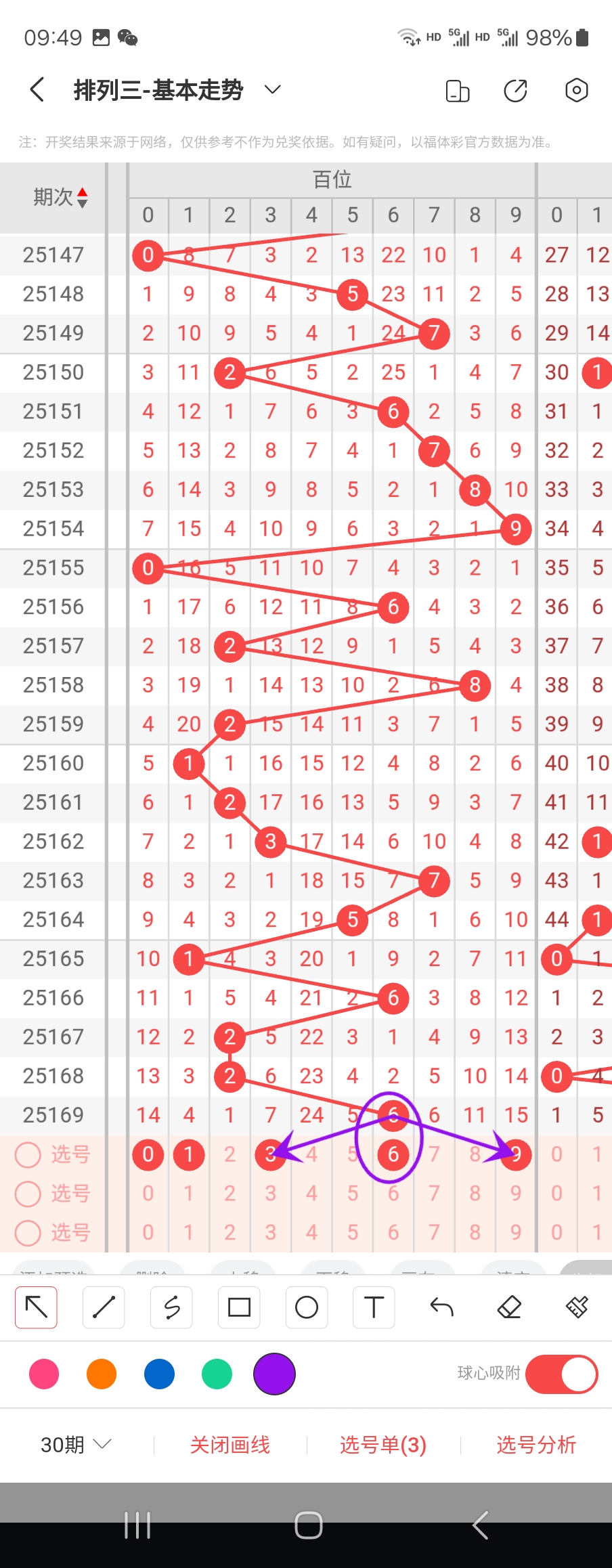 百位走势标注如下图;
