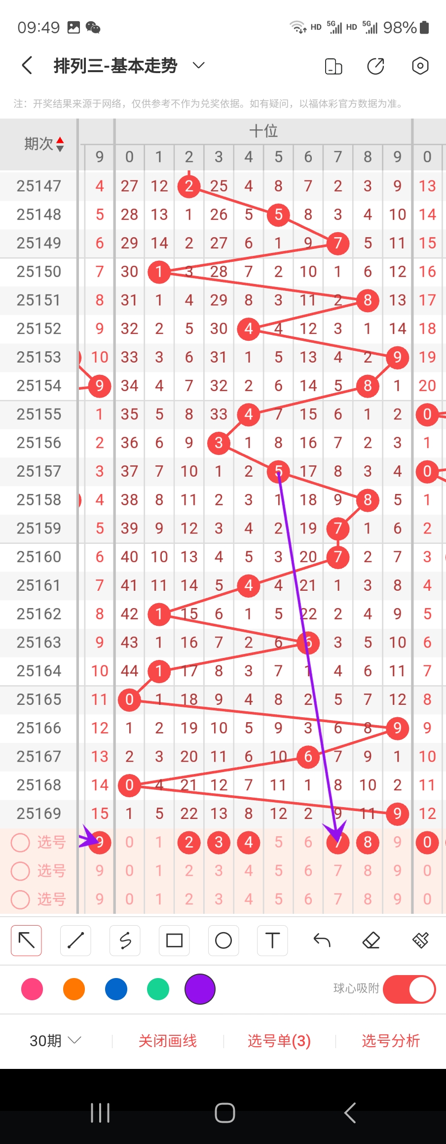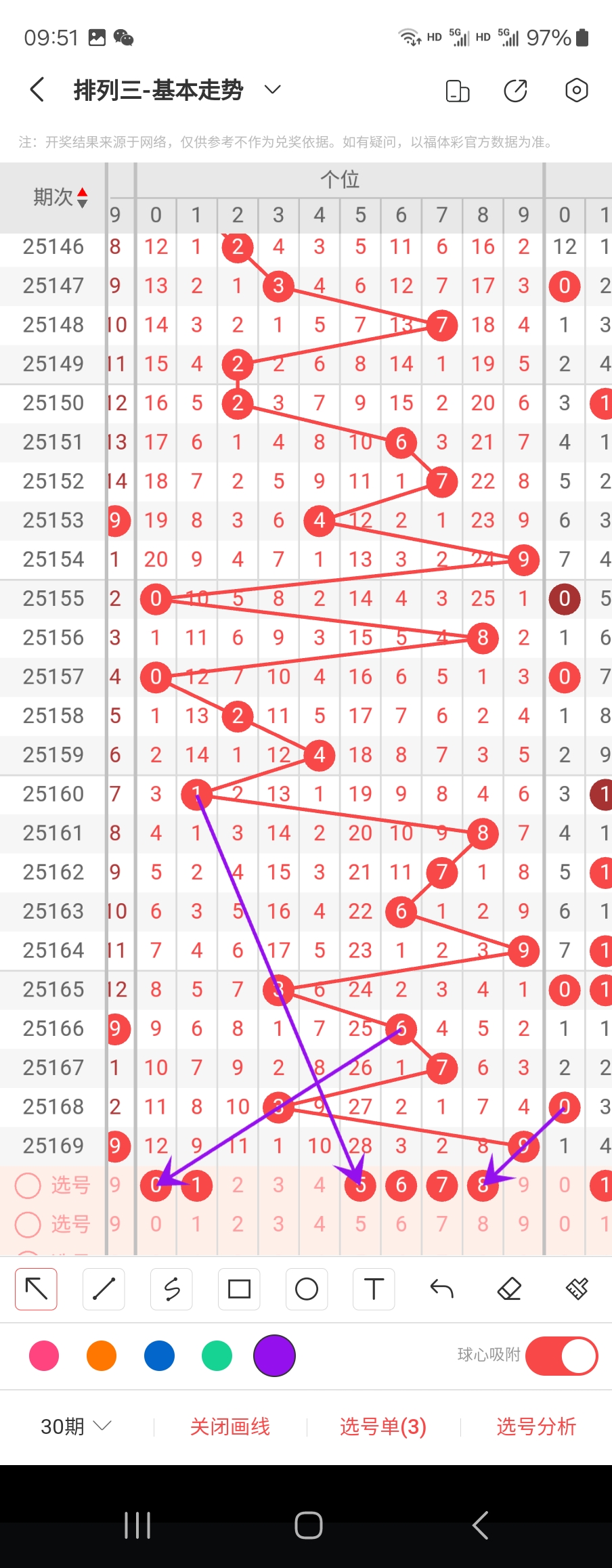 个位走势标注如下图;