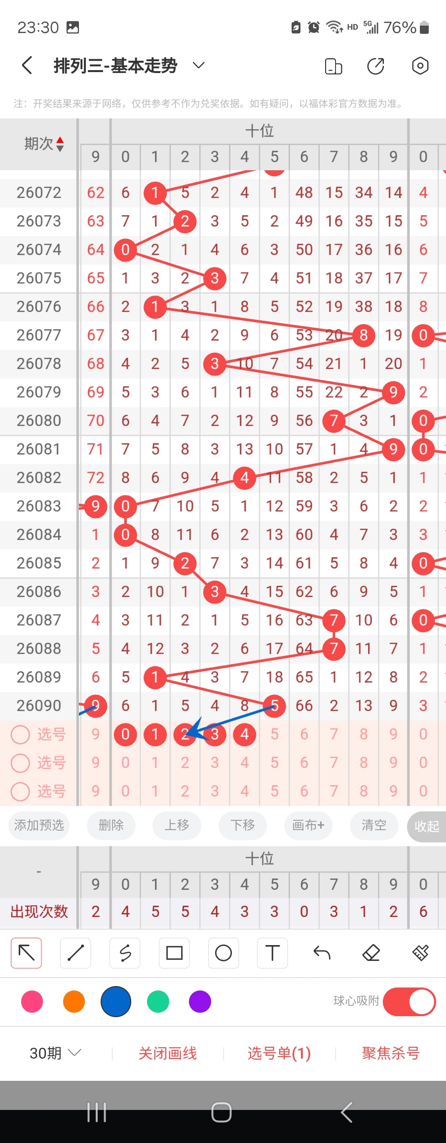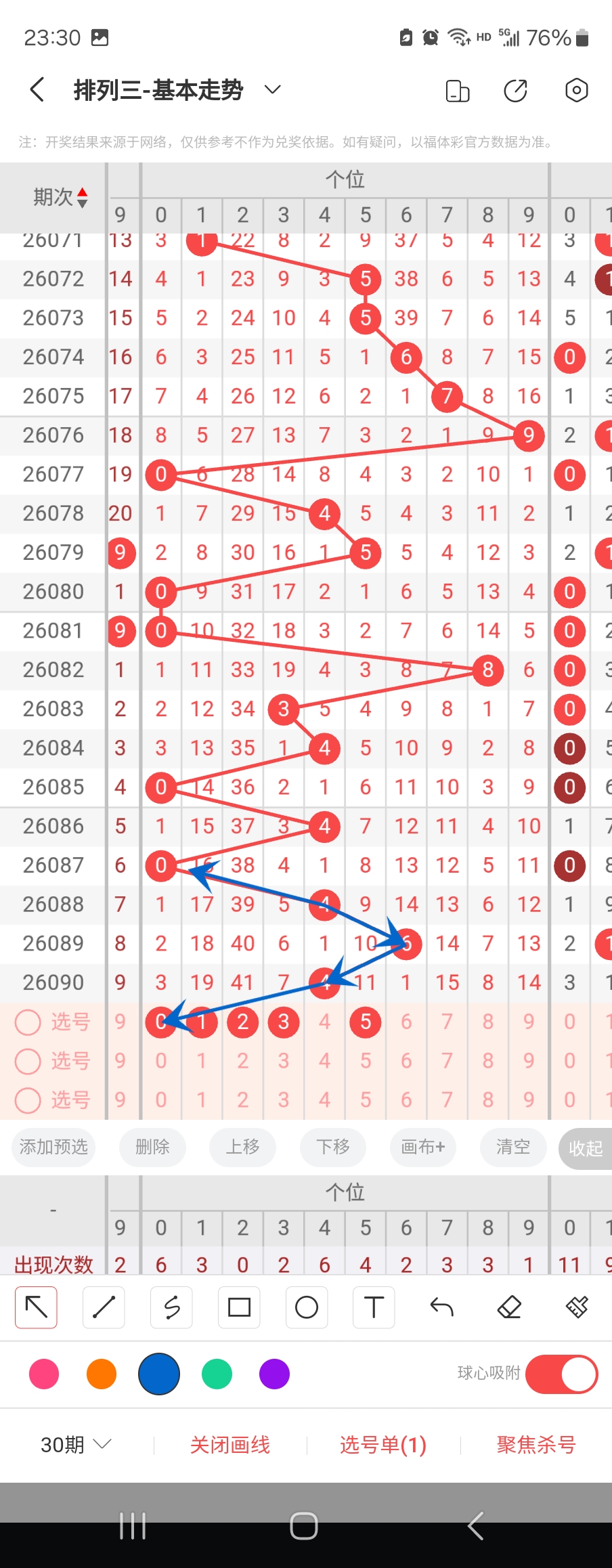 综合上期形态分布利于下期形态选号,约定12357为质,04689为合,147为1路,258为2路,0236为0路,