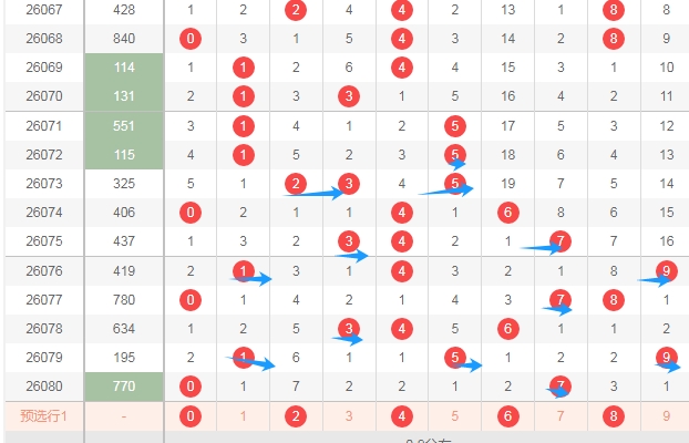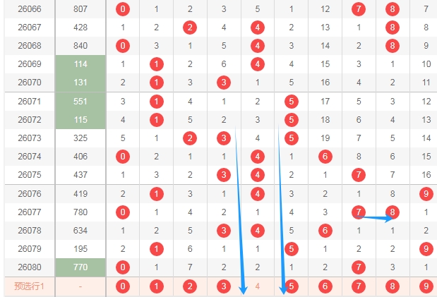 上图是体彩排列三开奖号码走势分布图,我标注出来的蓝色小箭头表示奇数数字,很明显奇数数字多,偶数数字少,上期又开出了两个奇数一个偶数组合,那么本期偶数数字02468可以关注出一个或者两个,防出3个。