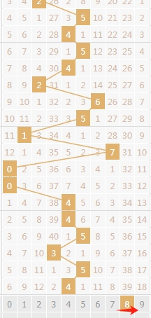 上图是体彩排列三开奖号码和值尾数走势分布图,我标注出来的是和值8尾数,到本期为止和值8尾数已经连续遗漏了39期,那么本期或者近期和值8尾数是可以关注的。