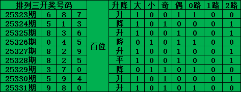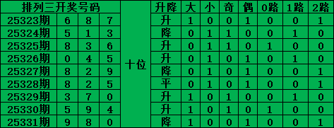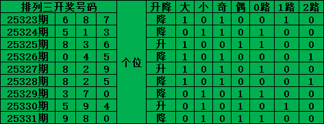综上所述,排列三第2025332期号码推荐: