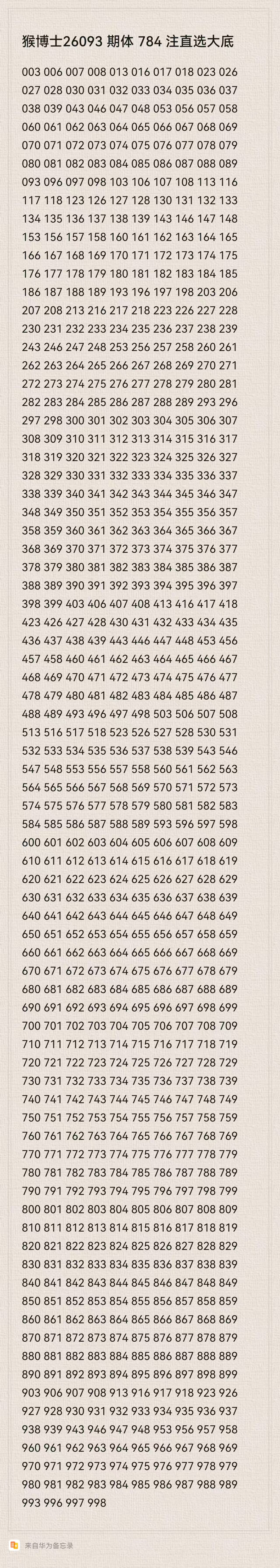 猴博士26093期排列三784注直选大底:(可以当母底用,然后进行缩水)