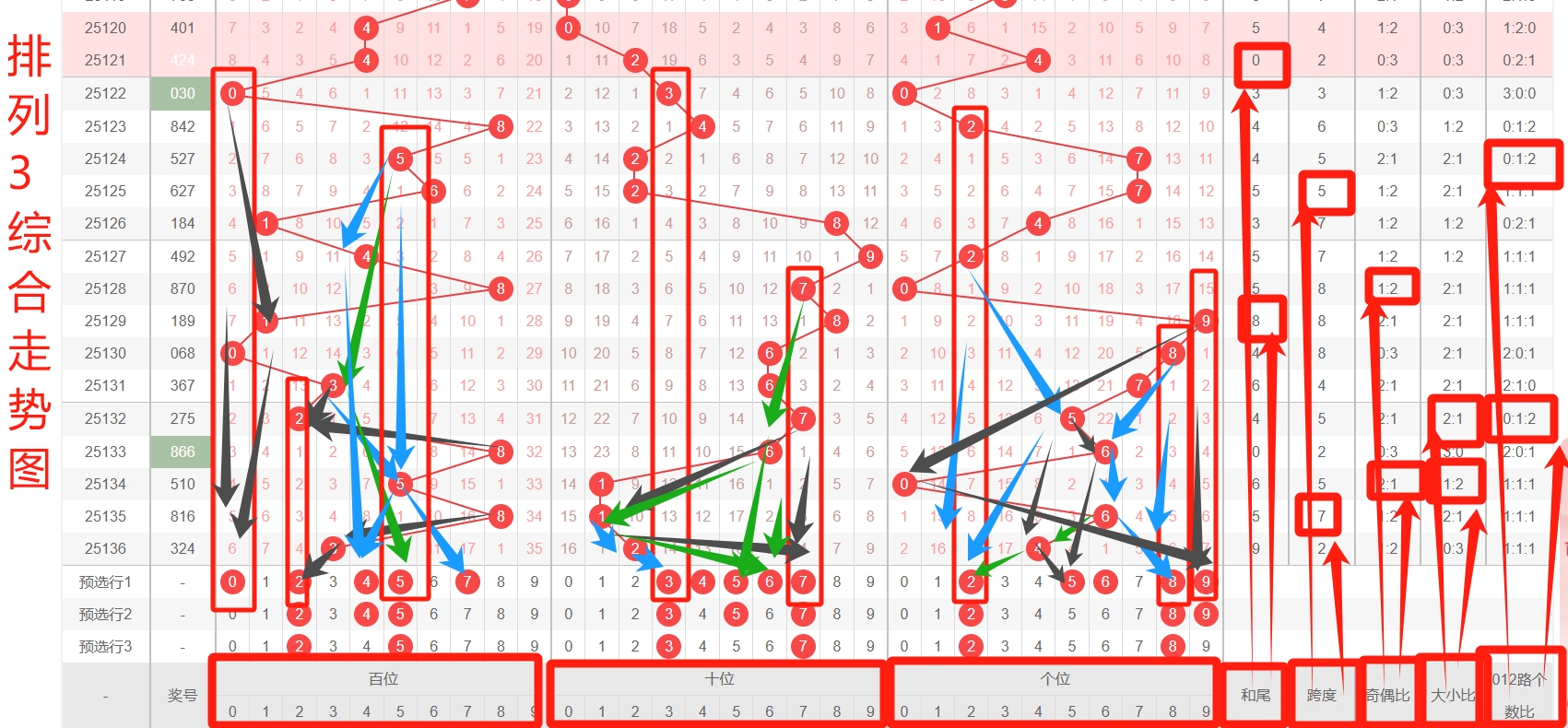 本期百位开出奇数号码【3】,近十五期百位开出号码为:【0-8-5-6-1-4-8-1-0-3-2-8-5-8-3】,开出奇偶比是:【偶偶奇偶奇偶偶奇偶偶偶偶奇偶奇】的态势,开出奇数号码,近十五期开出6:9的奇偶比,从比例看偶数占优势,奇偶比处于失衡之势,大小比为:【小大大大小小大小小小小大大大小】的态势,开出小号号码,大小比为7:8,小号占据优势,大小比处于基本平衡之势,百位开出跨度5,开出奇跨。