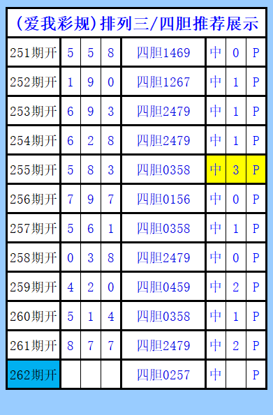 排列三第262期图文(爱我彩规),四胆推荐展示