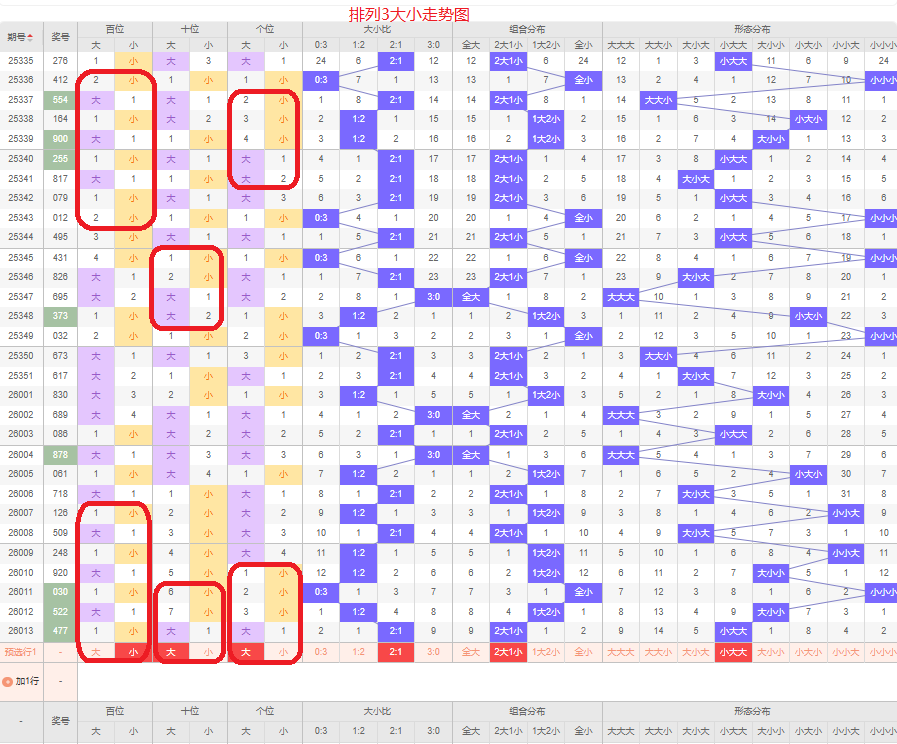 上一期大小比为2:1,两大的号码组合,近五期大号出5次,小号出10次,大号码出现较少,上一期是两大的号码组合,本期侧重两大的号码组合,百位侧重小号码,十位侧重大号码,个位侧重大号码,侧重小大大或者小大小的号码组合,根据大小形态五码定位01234/56789/56789或者01234/56789/01234